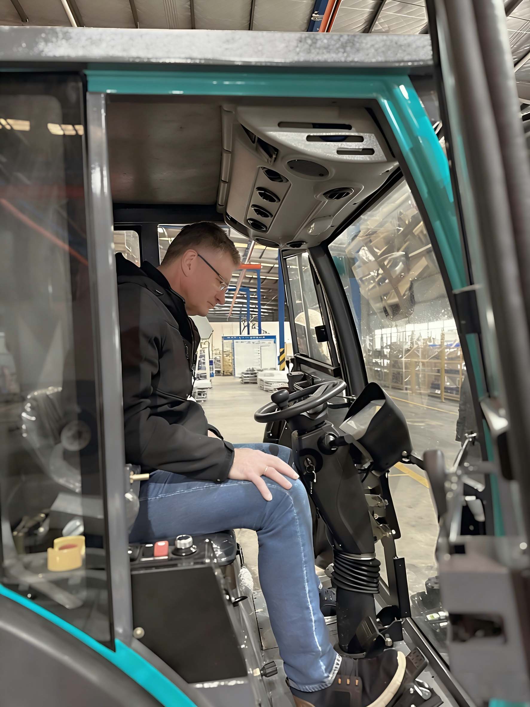 考察期間,客戶對FSL20XBEV鉸接式掃路機(jī)、FSL30XBEV純電動(dòng)掃路機(jī)表現(xiàn)出濃厚興趣,全程深入關(guān)注兩款設(shè)備的核心性能與作業(yè)表現(xiàn)。面對雨后濕葉緊貼路面、清潔難度顯著提升的實(shí)際工況,F(xiàn)SL系列的兩款掃路機(jī)憑借高效清掃的作業(yè)模式,依次完成路面清掃??蛻粲H自試乘試駕了兩款掃路機(jī),操作作業(yè),同公司相關(guān)負(fù)責(zé)人深度交流,對設(shè)備性能,制造能力,尤其是新能源研制能力表示高度認(rèn)可。
